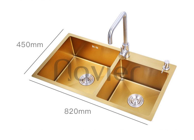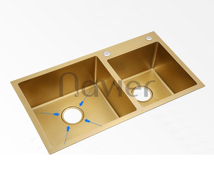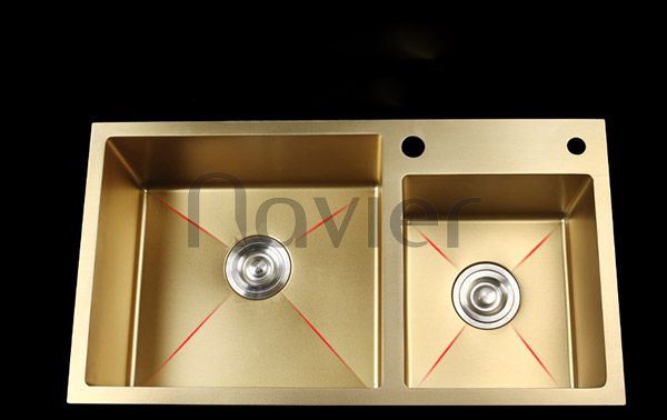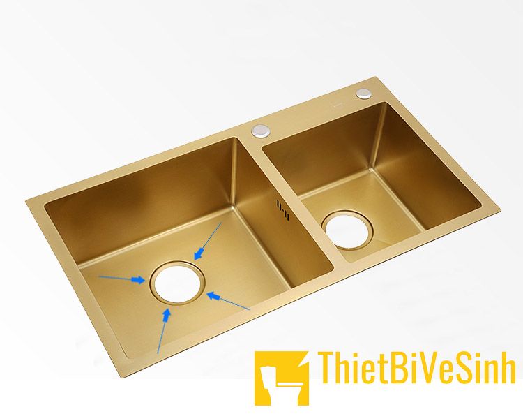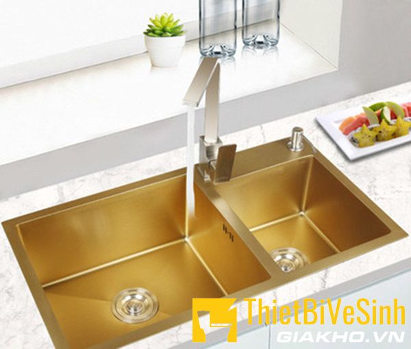 Ưu điểm vượt trội của dòng chậu này là đáy bồn sâu, láng bóng nên hạn chế được nước văng làm mất vệ sinh và ướt sàn. Bên cạnh đó, dung tích hai hố chậu rộng giúp tăng thêm công suất sử dụng.