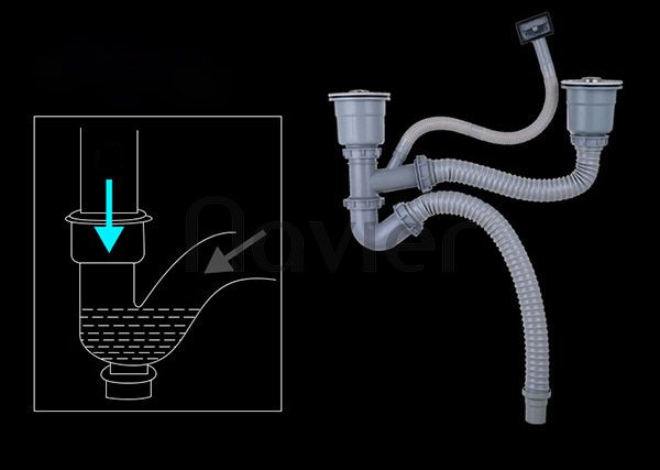 Hố thoát nước, lọc rác có 2 lớp bằng Inox và nhựa cao cấp. Dây dẫn chịu nhiệt, quấn lõi thép hạn chế nứt gãy, rỉ nước. Ống chữ S (con thỏ) hoạt động như một chiếc van nước tự động ngăn mùi hôi từ đường ống và hố ga xộc ngược lên.