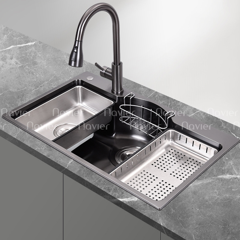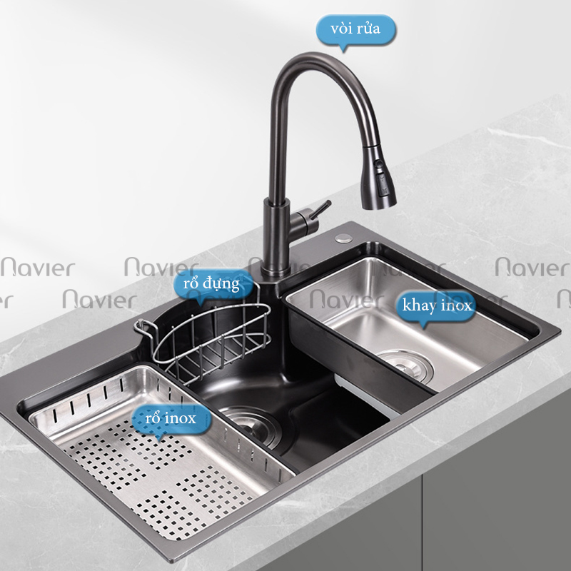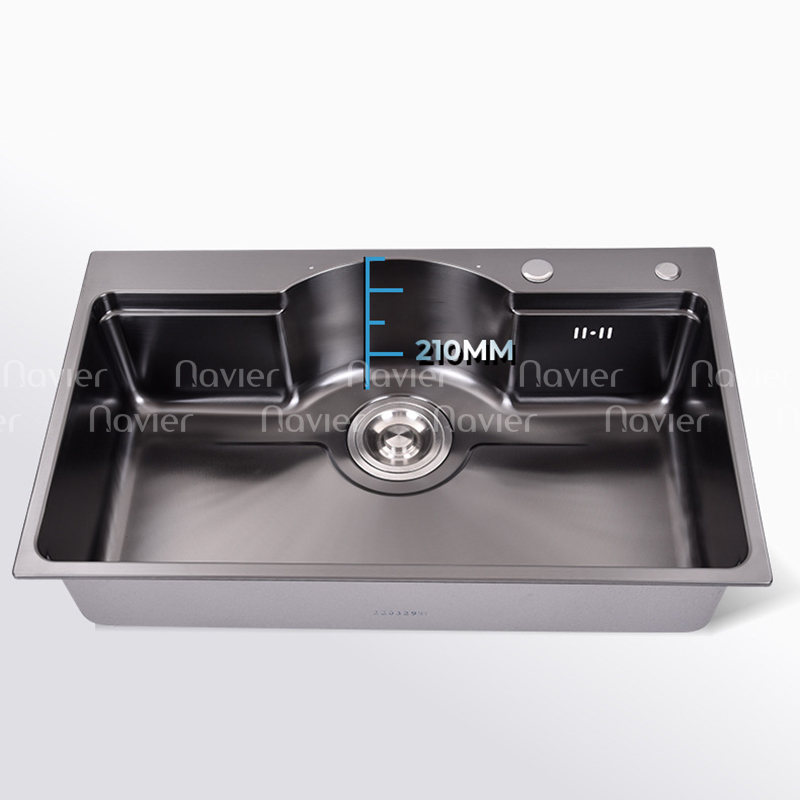 Chậu Rửa Chén 1 Ngăn Lớn Lõm Bán Nguyệt Inox 304 Phủ Nano Navier NV-7546N304 là mẫu chậu đơn cao cấp với thiết kế 1 ngăn lớn lõm bán nguyệt, giúp tối ưu diện tích và tăng cường tính tiện dụng. Sản phẩm được làm từ Inox 304 phủ Nano giúp chống bám bẩn, hạn chế trầy xước và đảm bảo độ bền lâu dài. Với kiểu dáng hiện đại và sang trọng, chậu rửa chén này là lựa chọn hoàn hảo cho mọi không gian bếp.